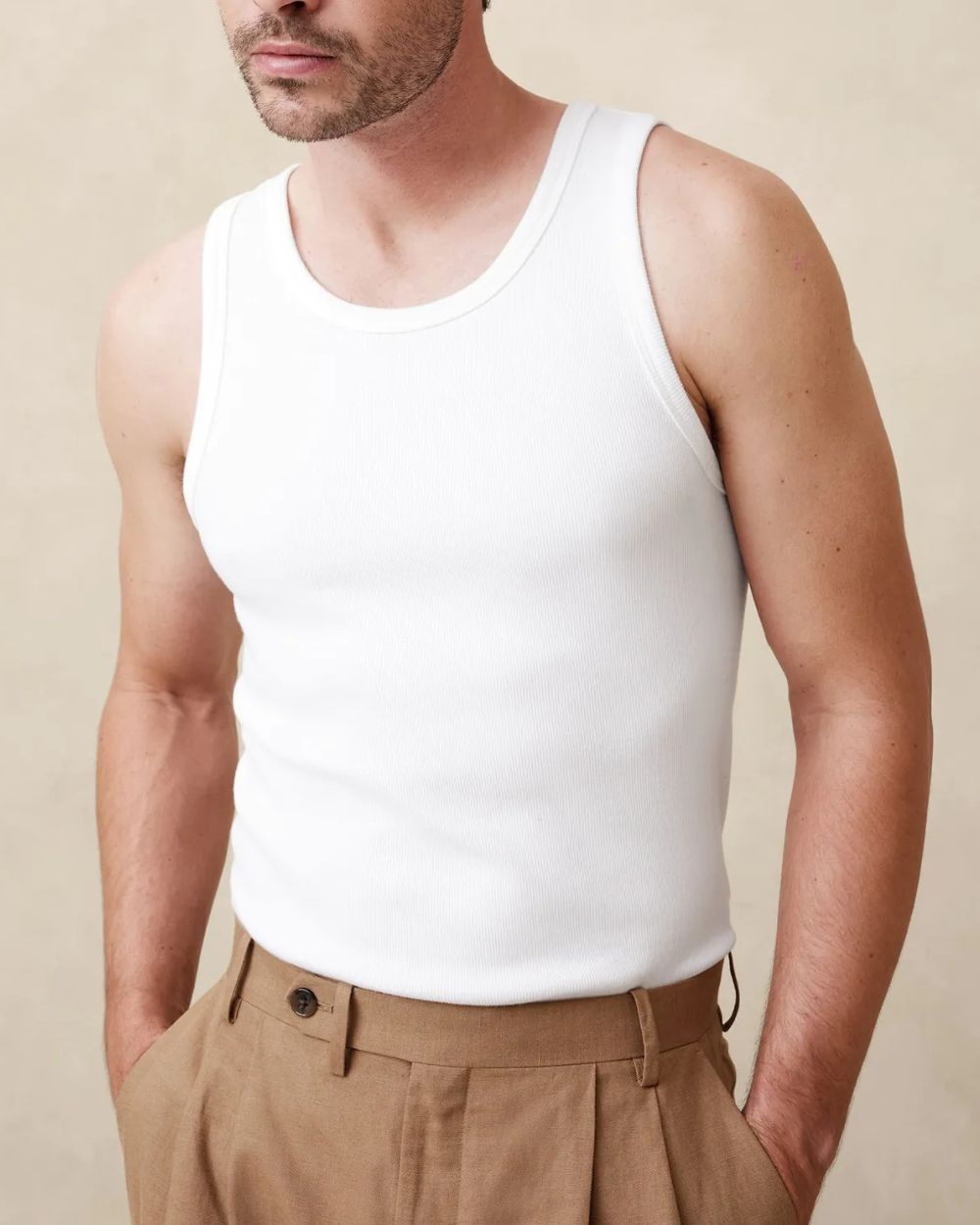 Tank top không chỉ gợi cảm bởi khả năng khoe khéo bờ vai và phần tay săn chắc, mà còn là món đồ đa năng có thể sexy, năng động, hoặc lịch lãm tùy vào cách bạn chọn chất liệu, kiểu dáng và cách phối đồ.